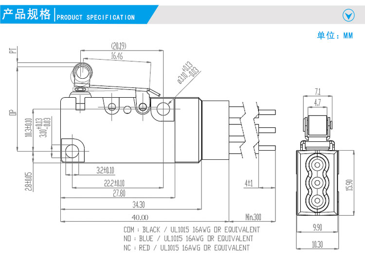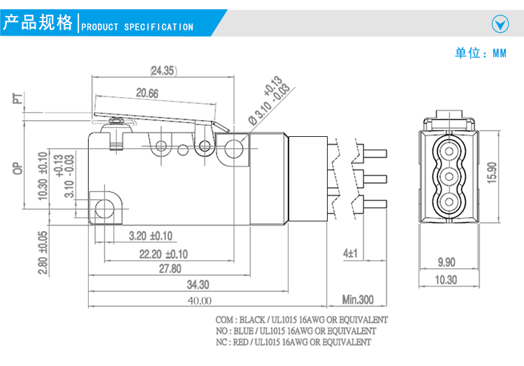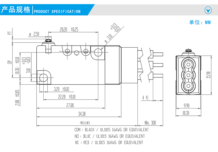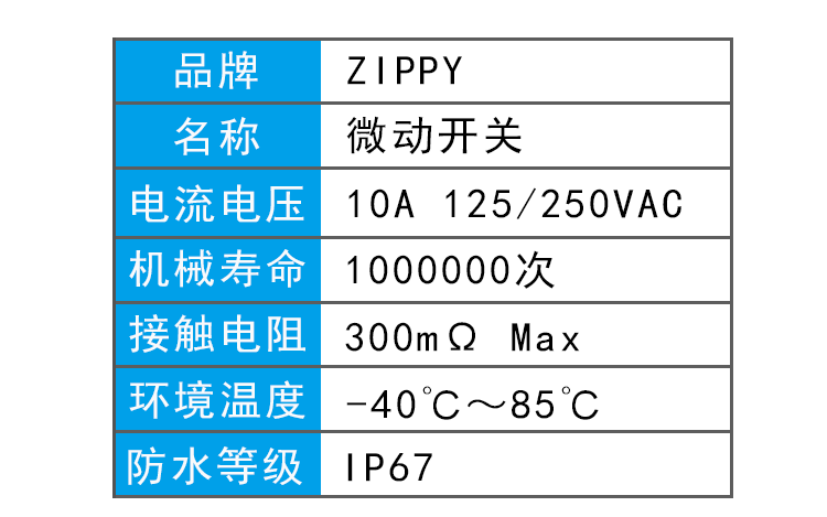 中國臺灣ZIPPYYU原裝大電流防水微動開關 防水等級:IP67級防水 電流電壓:10A 125/250VAC 接觸電阻:300mΩ Max 機械壽命:100萬級